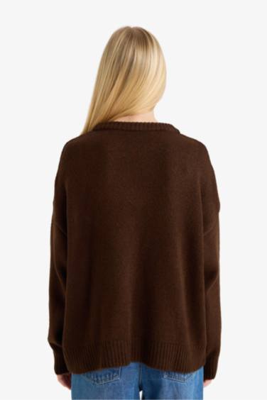 Regular Fit Bisiklet Yaka Köpek Desenli Triko Kazak