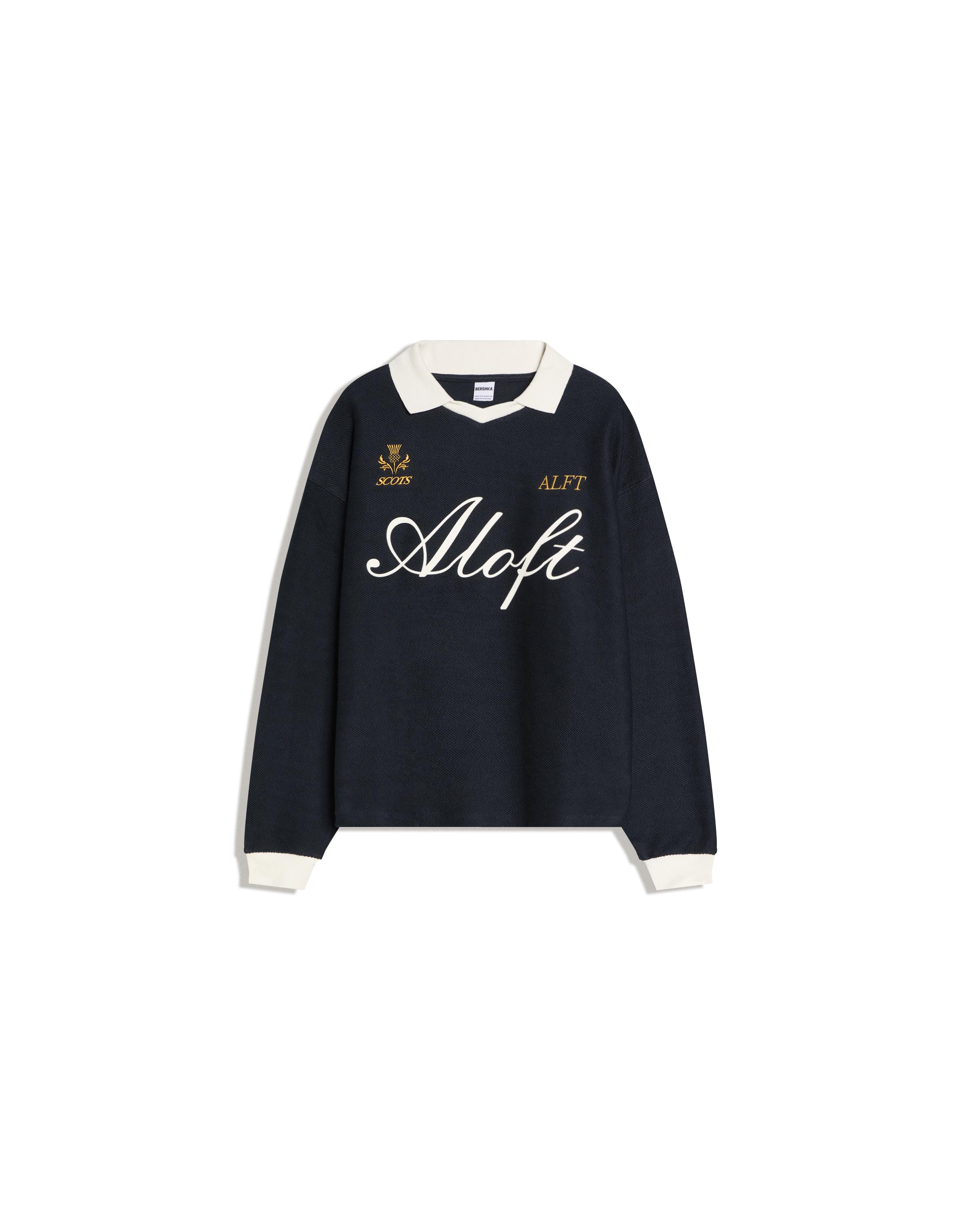 Baskılı boxy fit uzun kollu polo yaka tişört
