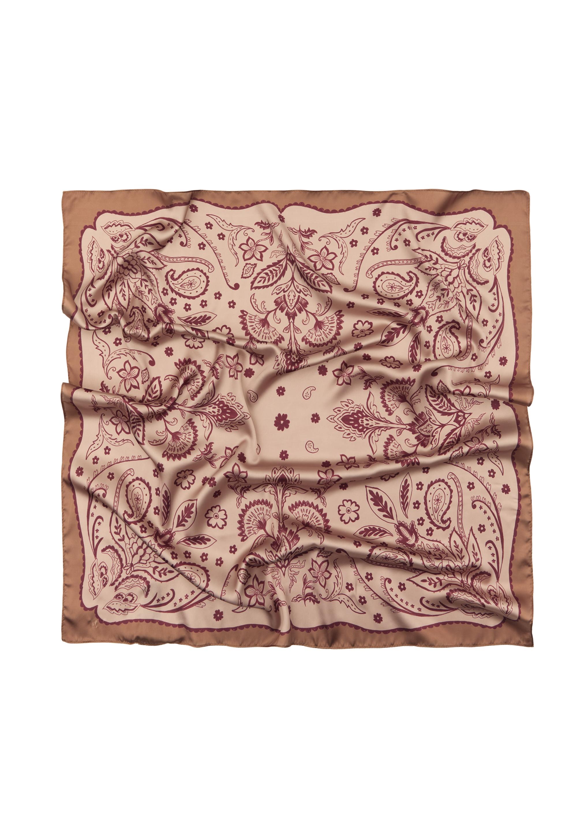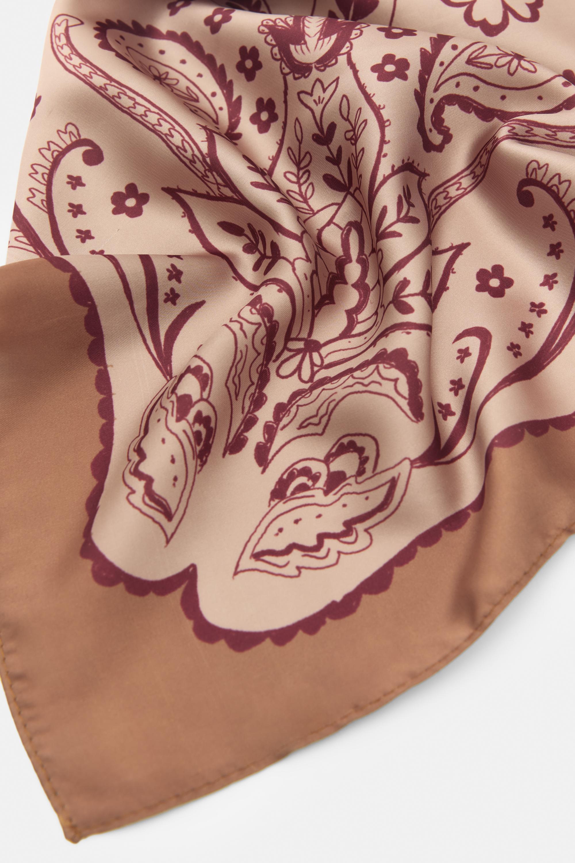 Saten yüzeyli kumaştan, çiçek desenli bandana.