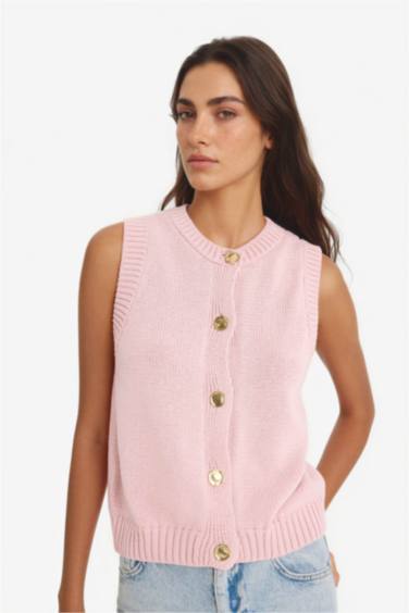 Bu triko süveter, temiz ve sade bir estetikle dikkat çeken, her gün giyilebilir bir parçadır. Düğmeli tasarımıyla klasik bir dokunuş eklerken, rahat kesimiyle konforu da ön planda tutar. Pink ve gold renkleriyle hem şıklık hem de hafif bir bohem havası sunar. Uzun gövdeli tipler için idealdir; omuz hatlarını yumuşatır ve vücut çizgilerini dengeler. Yaz sonu veya sonbahar aylarında, açık bir bluzun üzerine veya beyaz tisörtle kombinleme yaparak günlük bir stili kolayca oluşturabilirsin. Ofis-sonrası bulușmalarda ya da yemek gezilerinde, koyu tonlu pantolonla eşleştirerek daha şık bir görünüm elde edebilirsin. Siyah deri kemer ve beyaz sneaker ile tamamlayarak modern bir detay ekleyebilirsin. Kuru hava koşullarında dışa çıkmadan önce hafif bir kazağa dönüştürülebilir. Katlanmadan asmali, nemli ortamlardan uzak tutarak ömrünü uzatmanı öneririm. İç katman olarak da kullanılabilir, bu sayede farklı tarzlara uygun hale gelir.