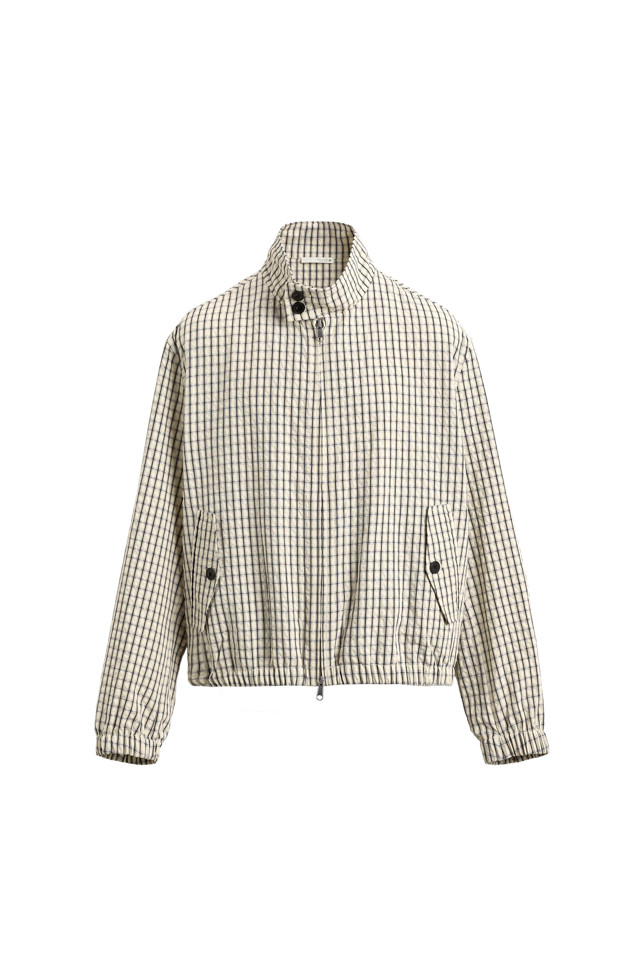 CROPPED FIT CHECK TEXTURED JACKET