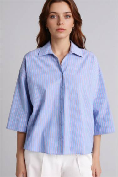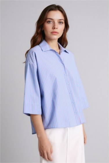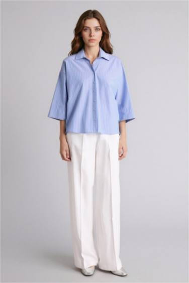 Relax Fıt Gömlek Yaka Poplin Uzun Kollu Gömlek