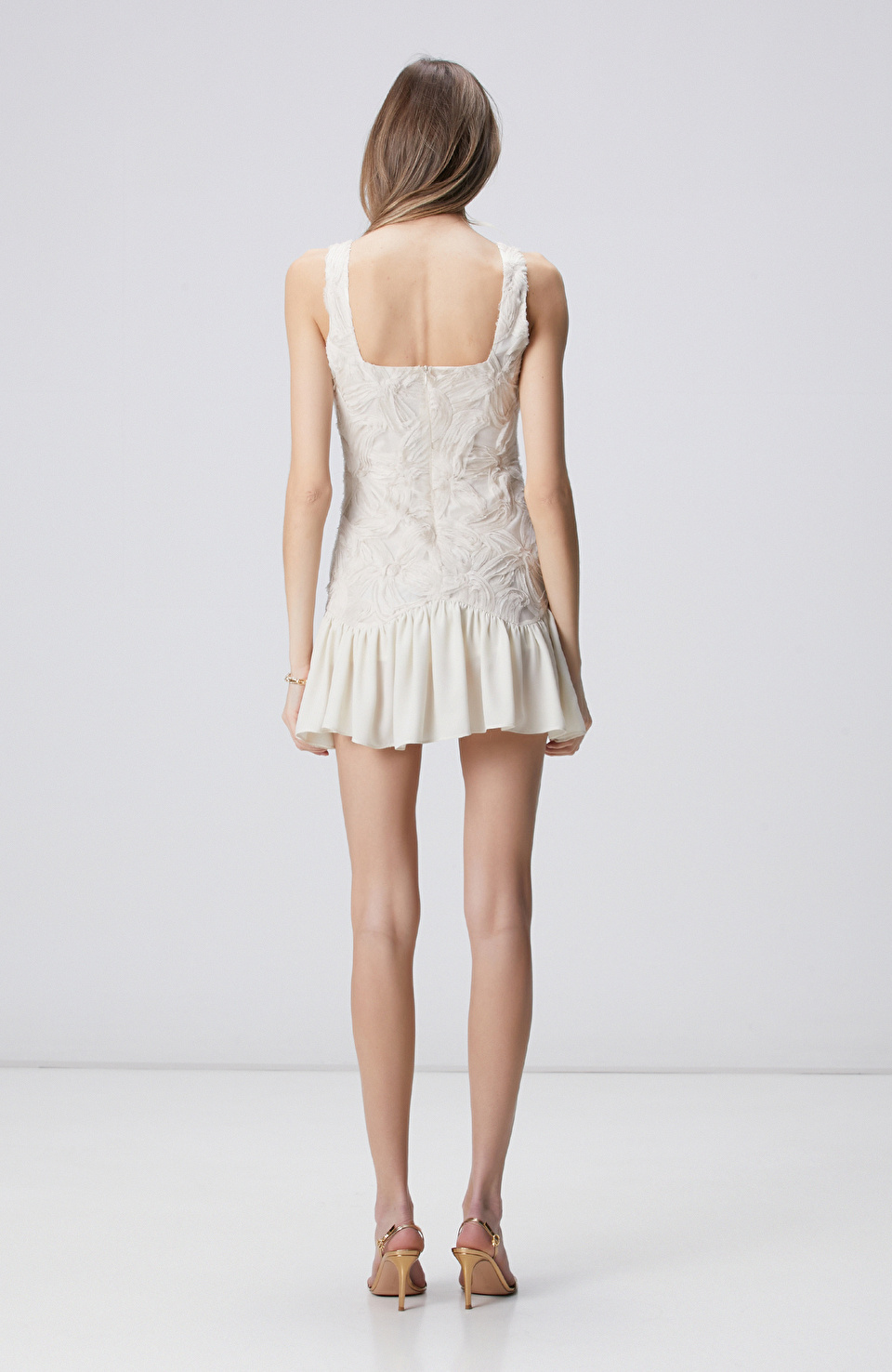 Kırık Beyaz Desenli Mini Abiye Elbise