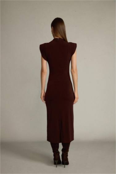 Fitted Dik Yaka Kolsuz Midi Elbise