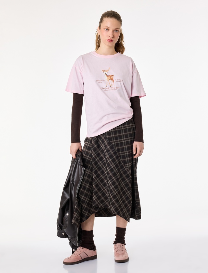 Rahat Kalıp Kısa Kollu Bisiklet Yaka Geyik Baskılı Pamuklu Tişört