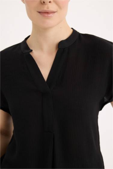 Regular Fit Apaş Yaka Basic Düz Kısa Kollu Bluz