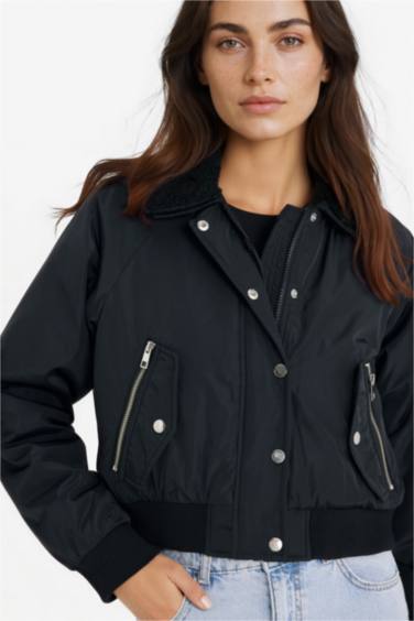 Su Geçirmez Regular Fit Polo Yaka Crop Fermuarlı Mont