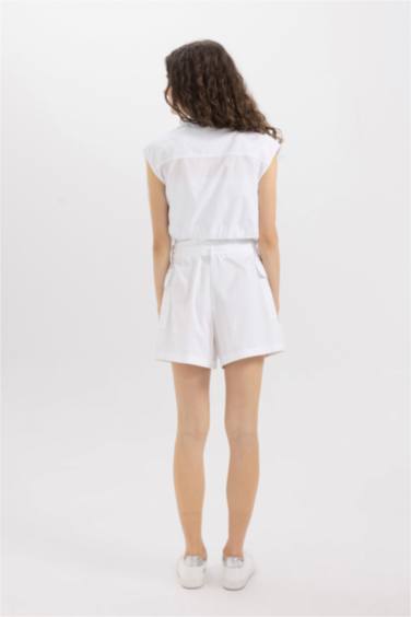 Paperbag Yüksek Bel Geniş Paça Poplin Şort