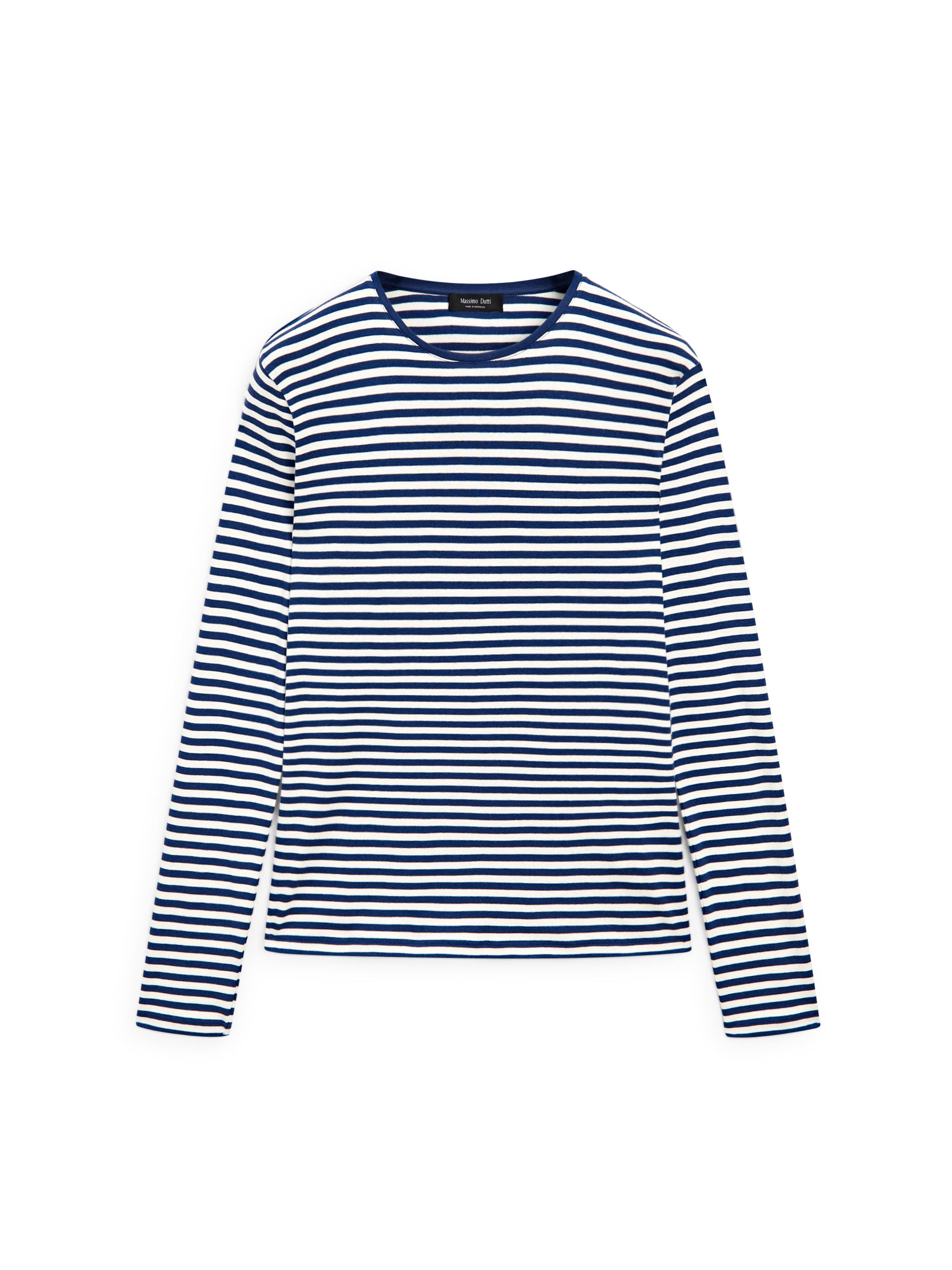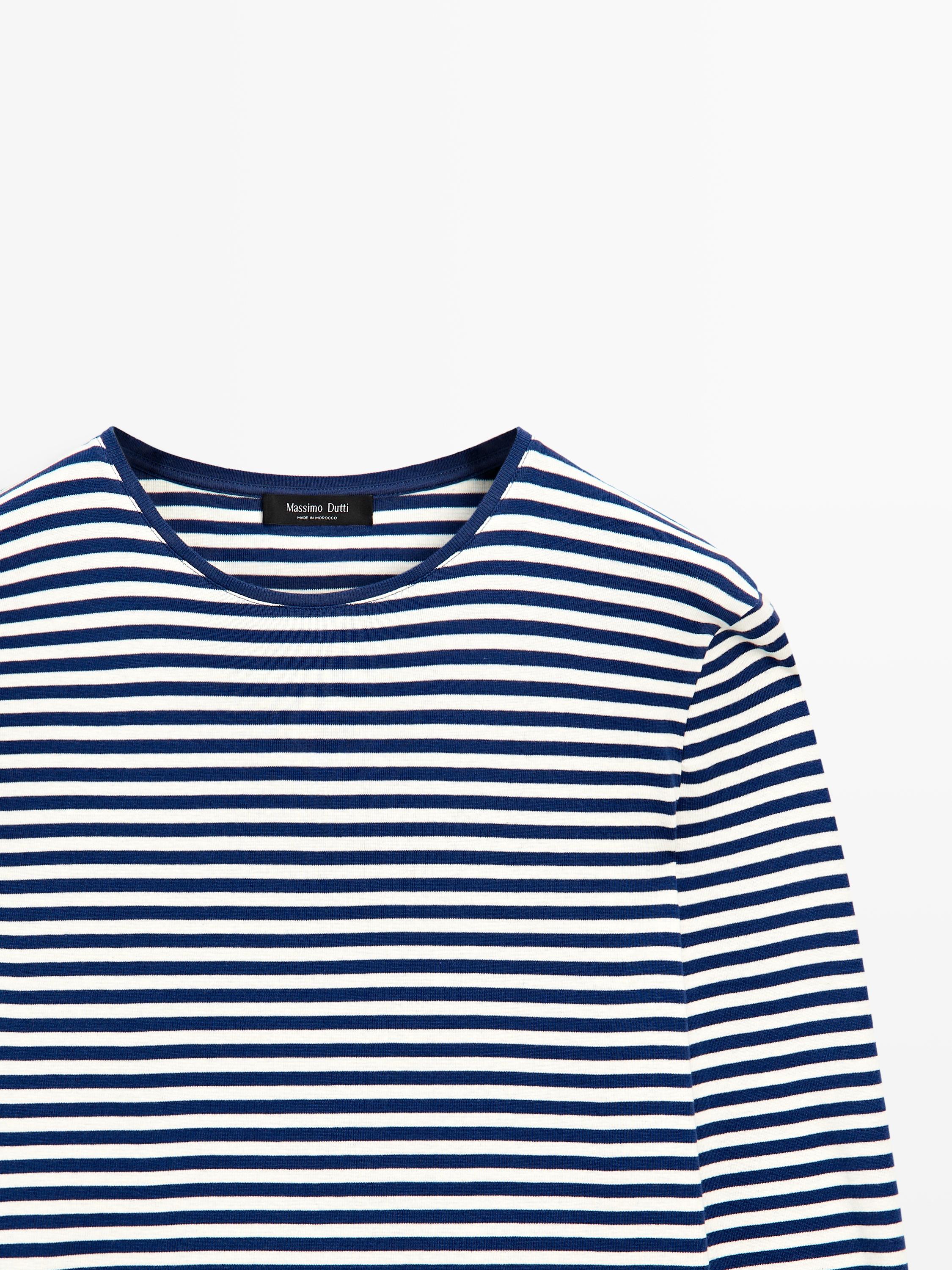 Uzun kollu çizgili kontrast detaylı tişört — massimodutti | Oneri