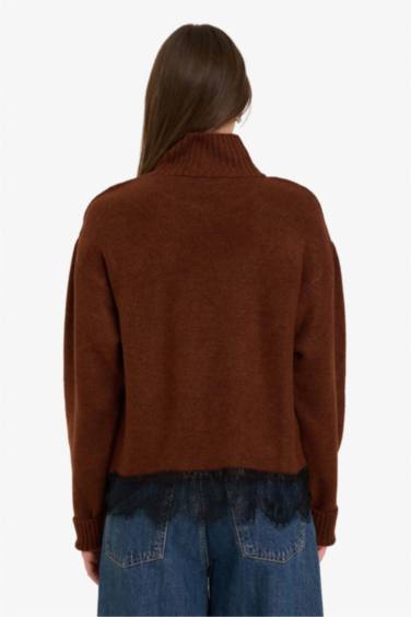 Regular Fit Balıkçı Yaka Etek Ucu Dantel Detaylı Kazak
