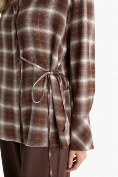 Regular Fit Simli Kumaş Kareli Uzun Kollu Gömlek