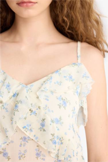 Regular Fit V Yaka Çiçekli Şifon Askılı Bluz