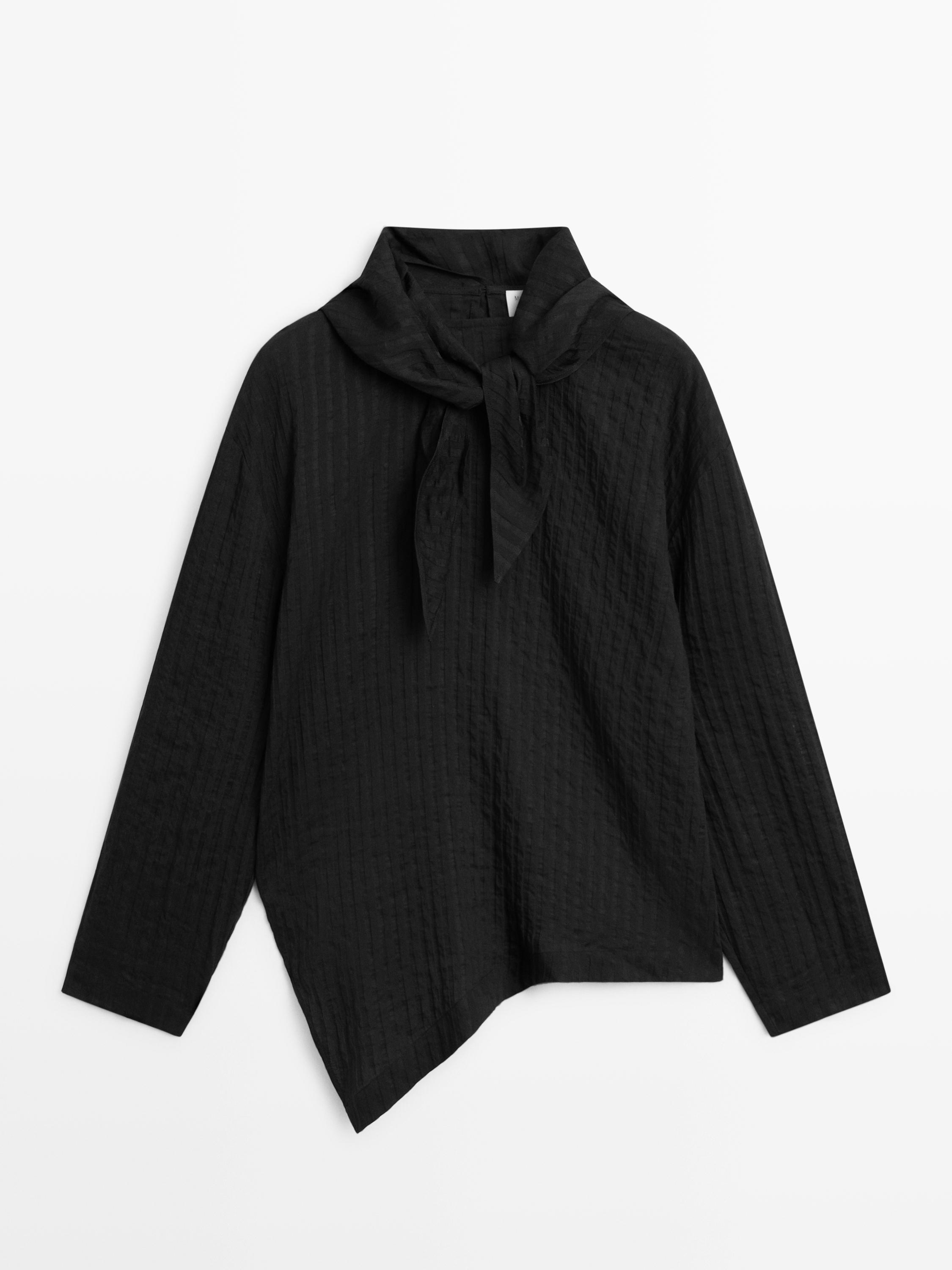 Keten karışımlı fular detaylı çizgili gömlek