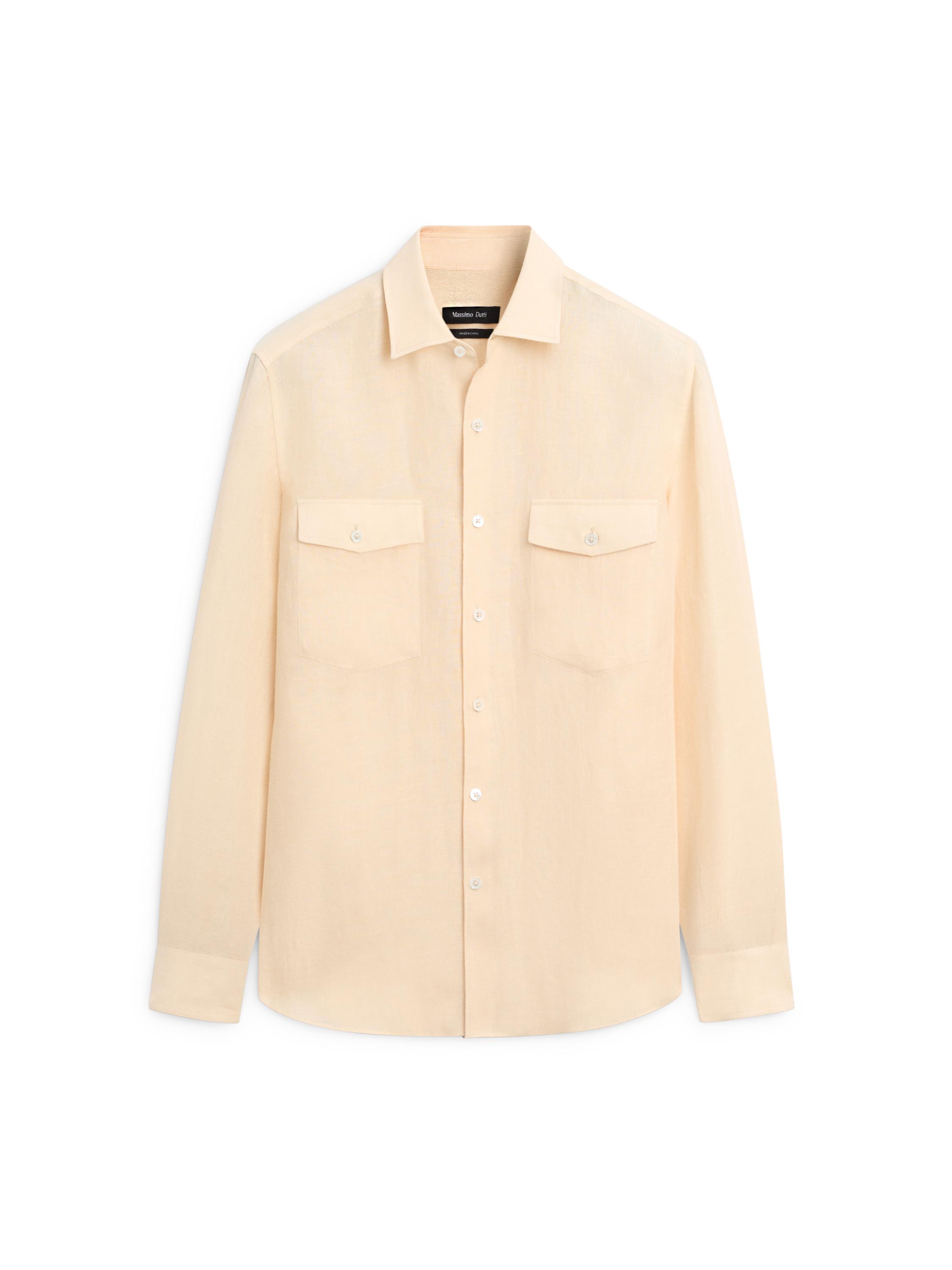 Cep detaylı %100 keten gömlek