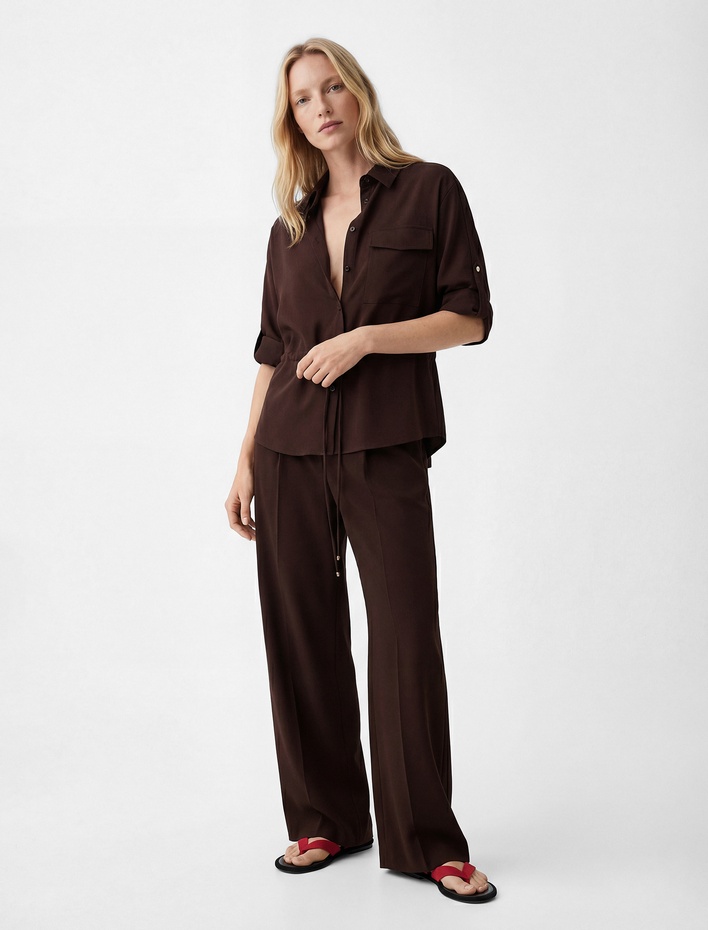 Uzun Kollu Klasik Yaka Beli Bağcıklı Cepli Gömlek
