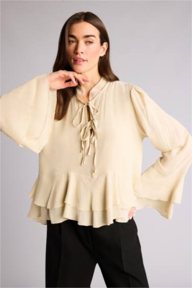 Regular Fıt V Yaka Viskon Uzun Kollu Bluz