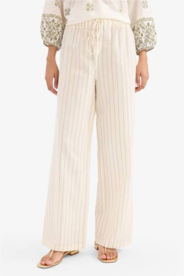 Regular Fit Çizgili Esnek Yüksek Belli Keten Karışımlı Palazzo Pantolon