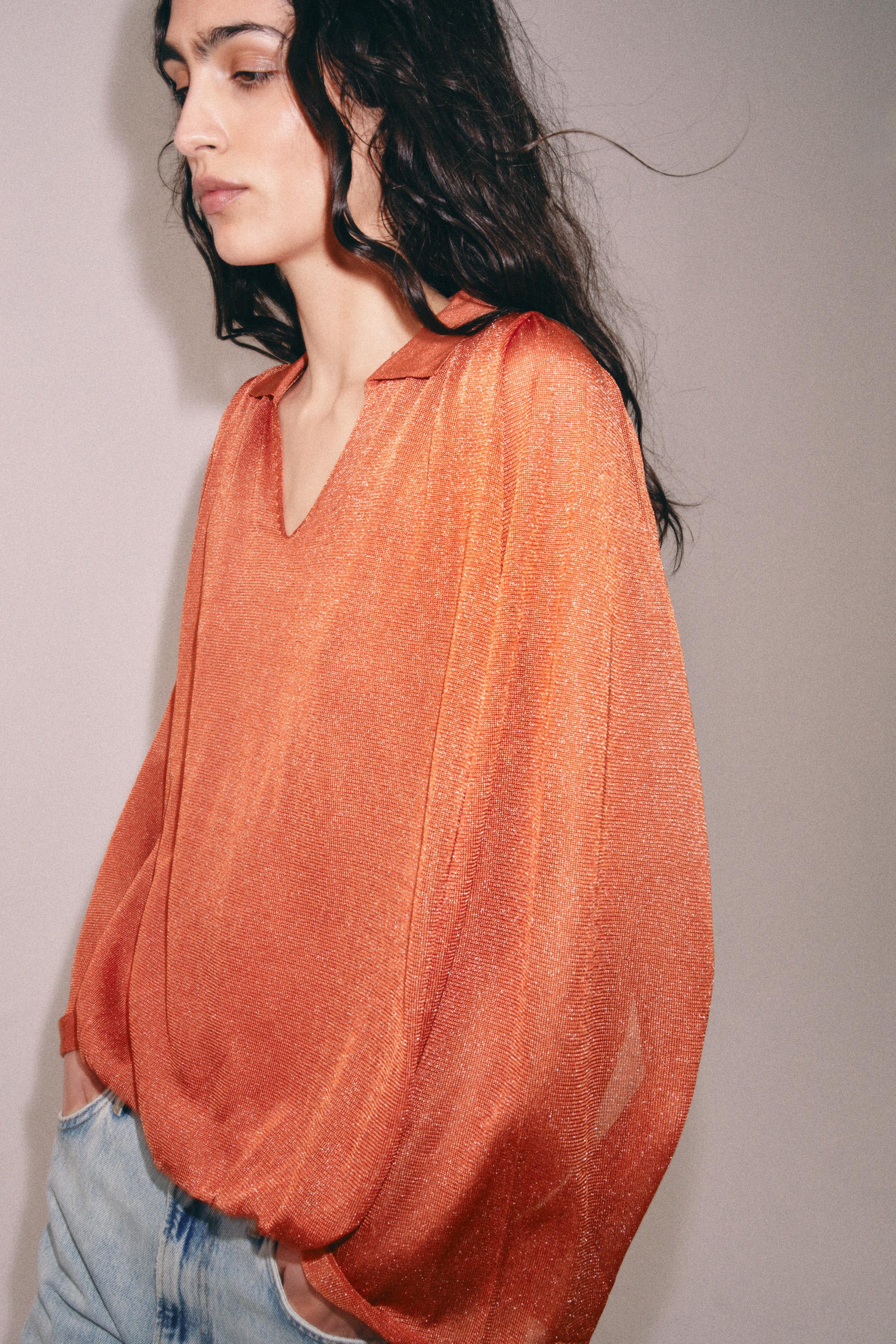 Rust ve terracotta tonları, doğal ve ılık bir havayı taşıyor. Bu triko top, minimalist anlayışla sade ama etkili bir dengede. Uzun govdeli tipler için ideal çünkü gövdeyi dengeleyen hafif gevşek kalıbı var. Sıcak mevsimlerde açık renkli pantolonlarla veya kisaca yazlık elbiseyle kombinlenebilir. Sonbahar aksam yuruyuslarında ise siyah deri kemer ve beyaz sneaker ile tamamlayarak smart casual bir görünüm elde edilebilir. İç katman olarak da kullanılabilir; beyaz tisortle ve yuksek bel jean ile kombinleme yaparak günlük rahatlık ve stil bir araya getirilir. Katlanmadan asmali, nemli ortamlardan uzak tutmalı. Aksesuar olarak altın rengi bilezik veya basit bir saatle ekstra dokunuş verilebilir.