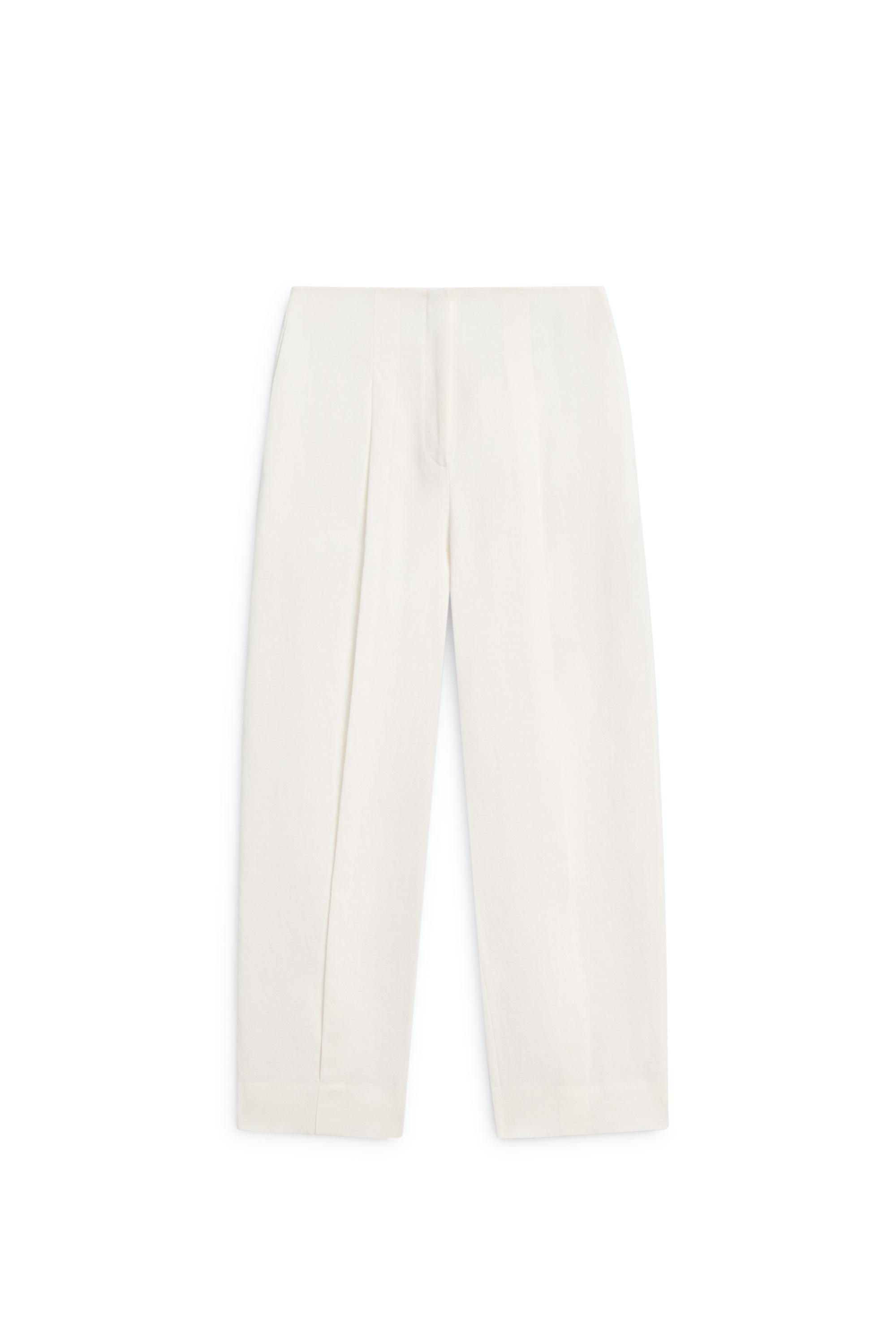 Pens detaylı keten paça manşetli pantolon
