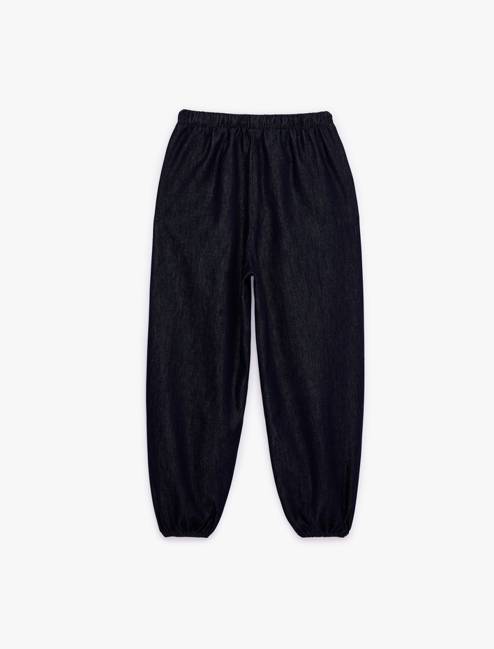 Rahat Kalıp Beli Bağcıklı Cepli Jogger Denim Pantolon