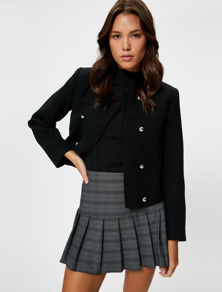 Crop Tüvit Ceket Kruvaze Düğmeli