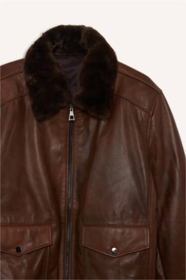 %100 Deri Premium Modern Fit Polo Yaka Astarlı Fermuarlı Mont
