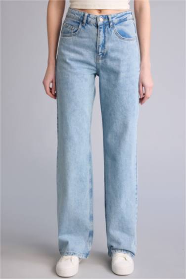 Straıght Wıde Yüksek Bel Jean Yıkamalı Pantolon
