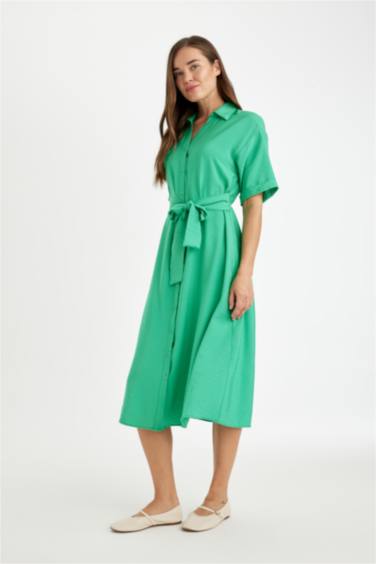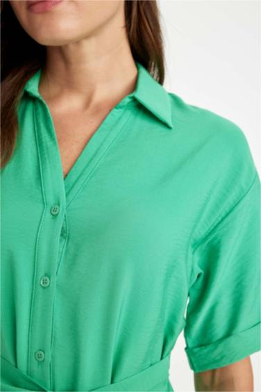 Regular Fıt Gömlek Yaka Kısa Kollu Elbise