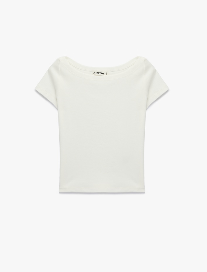 Pamuklu Kısa Kollu Kayık Yaka Slim Fit Tişört