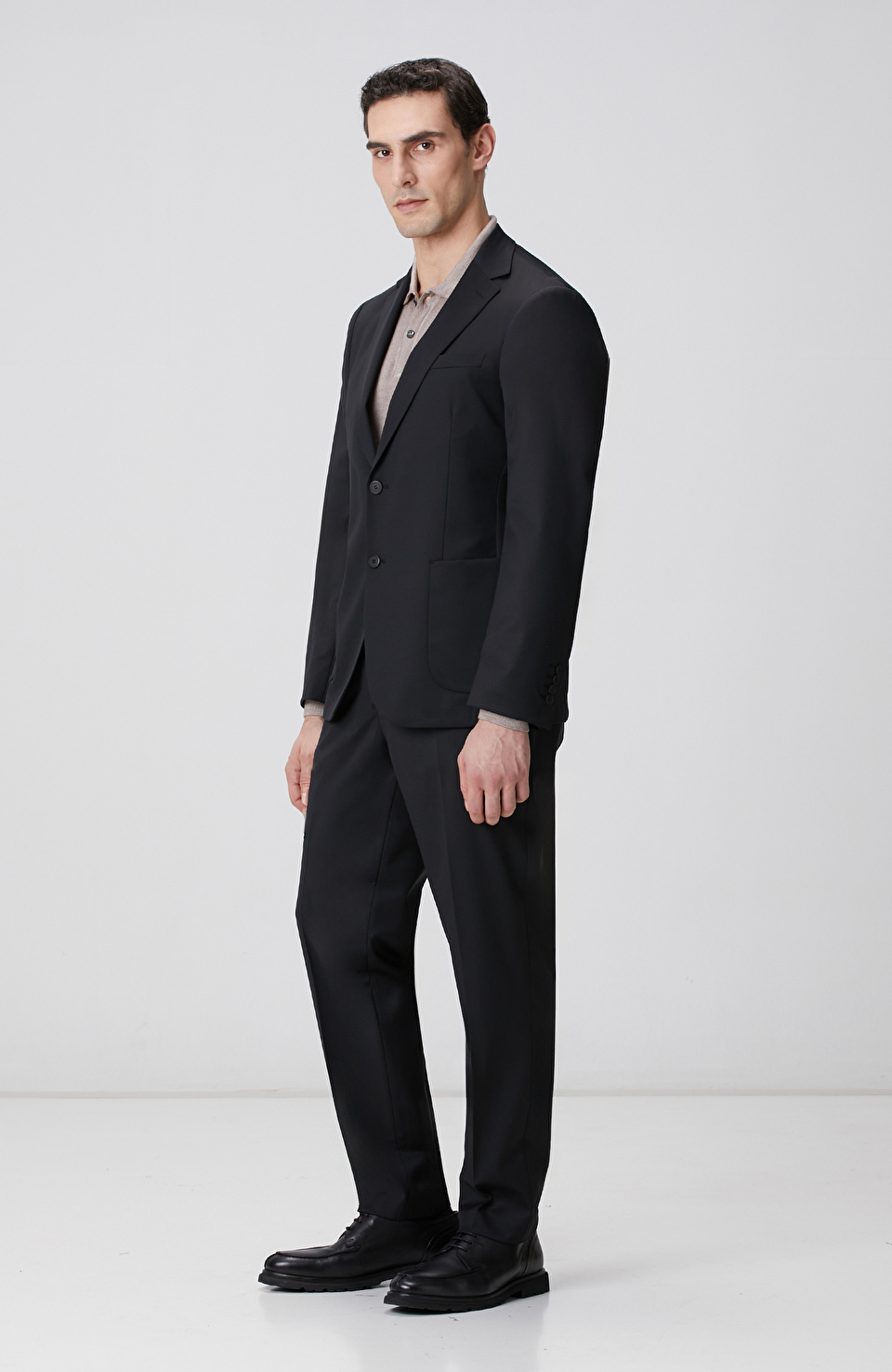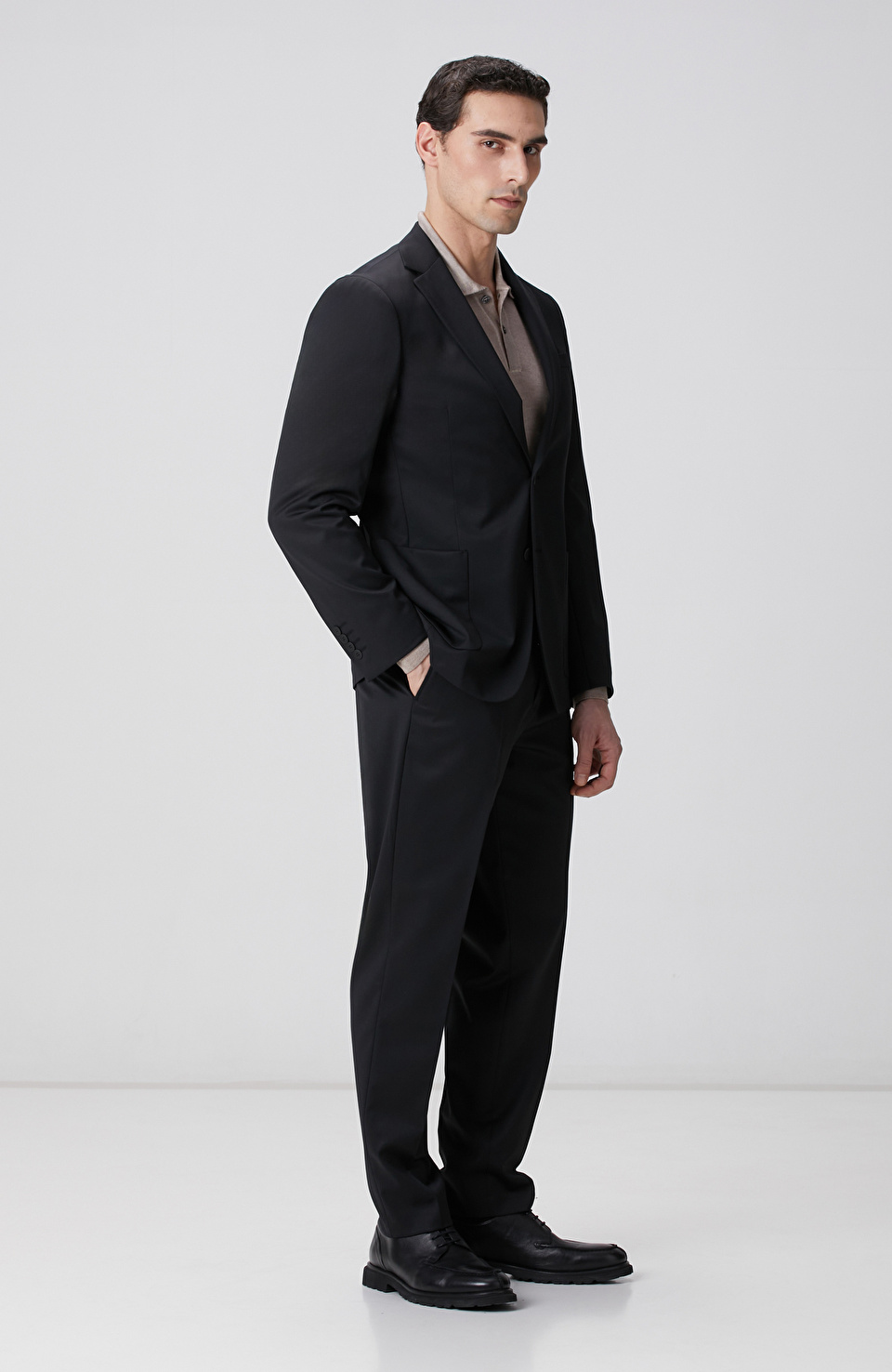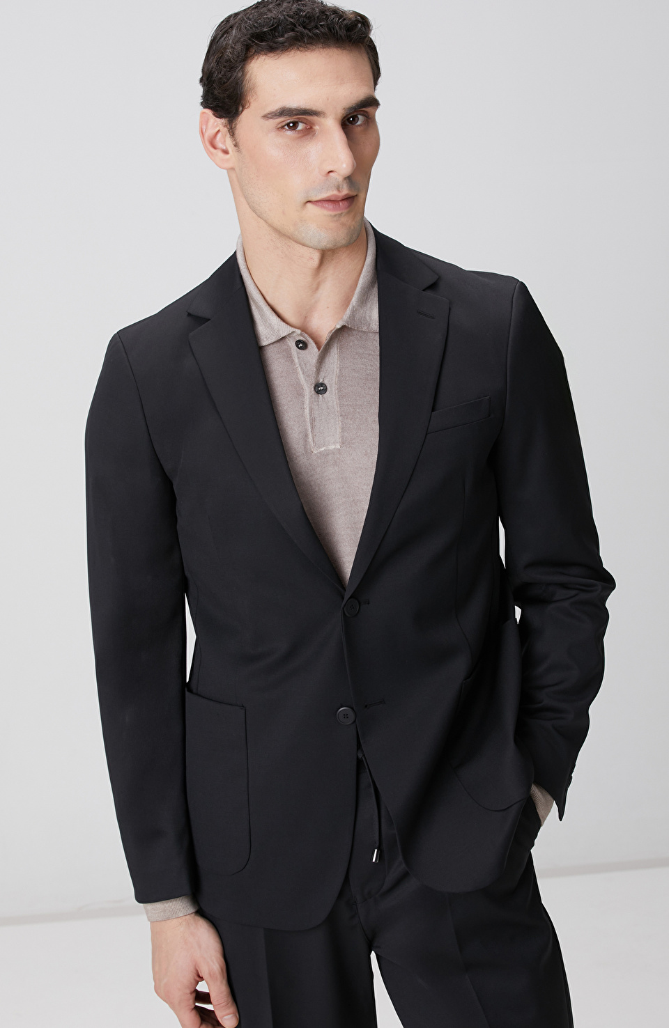 Siyah Mono Yaka Yün Mix Takım Elbise