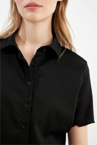 Fitted Bürümcük Kısa Kollu Gömlek