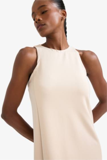 Yuvarlak Yaka Modal Kolsuz Midi Elbise