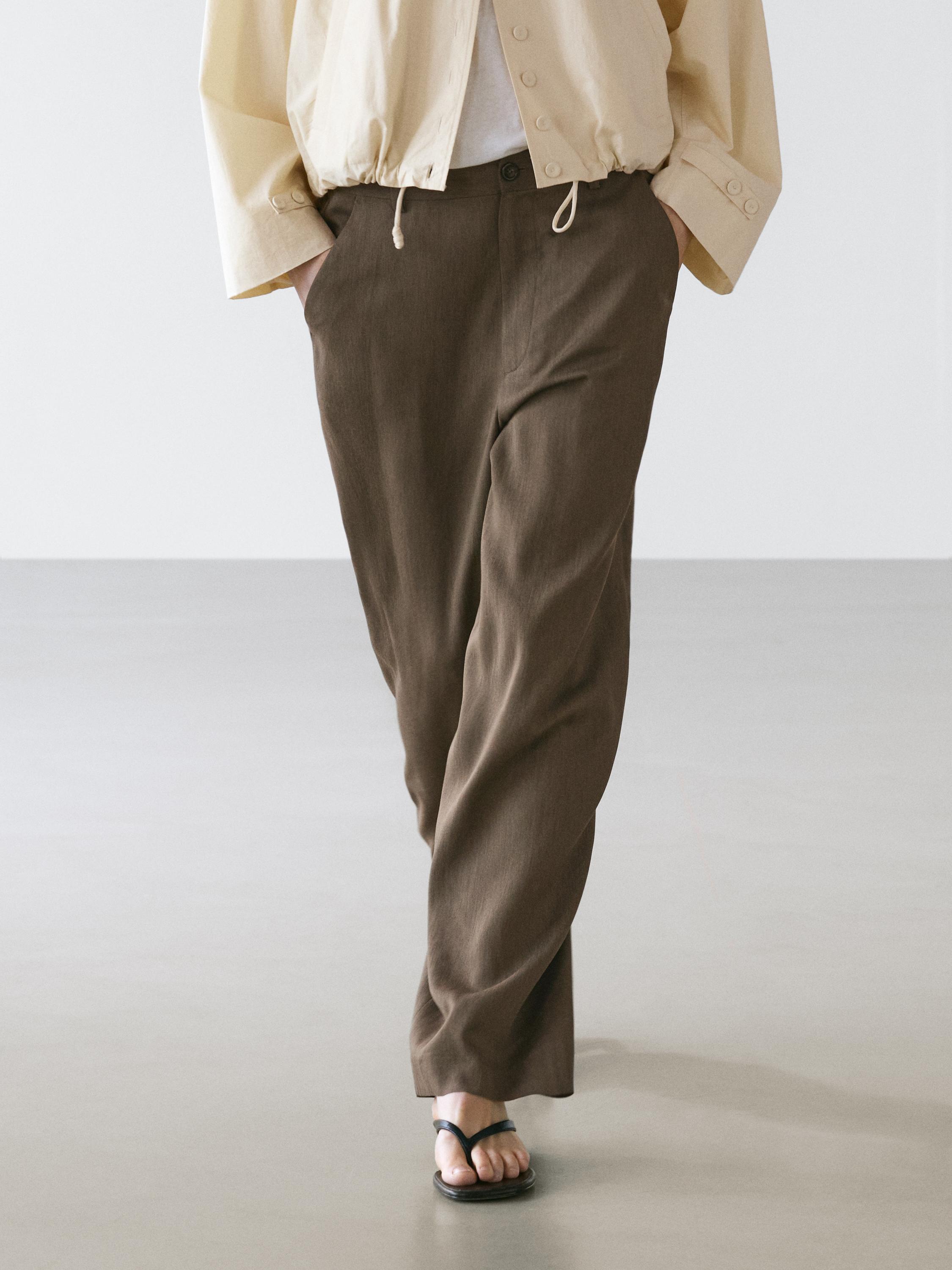 Lastik bel detaylı dökümlü pantolon