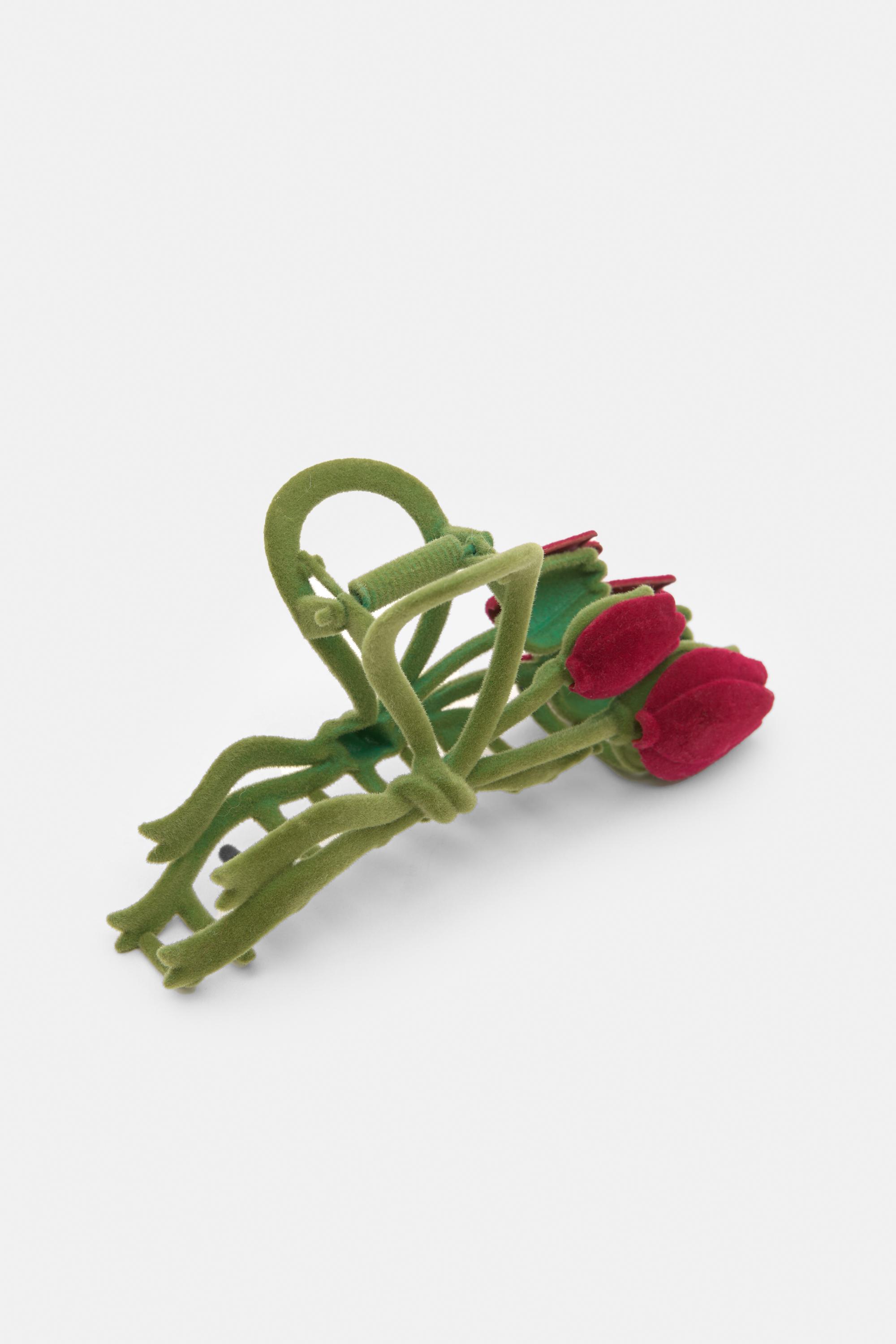 Kadife kumaşla kaplı çiçek şeklinde kürk tokası.