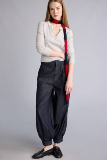 Balloon Fıt Yüksek Bel Jean Yıkamalı Pantolon