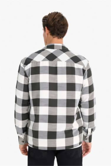 Regular Fit Polo Yaka Pamuklu Kareli Uzun Kollu Gömlek