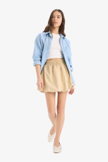 Balloon Fit Yüksek Bel Tafta Terry Cotton Mini Etek