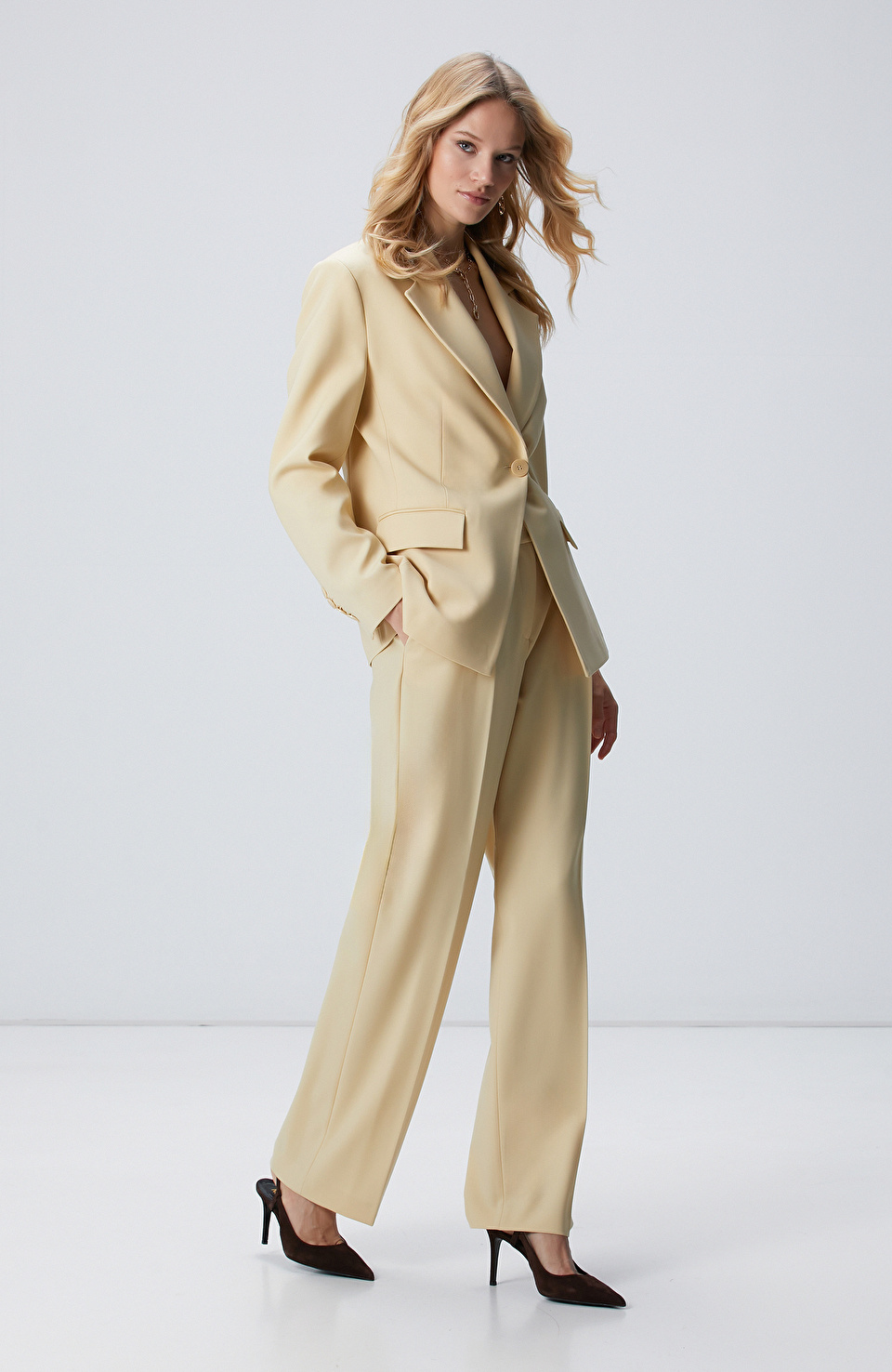 Sarı Yün Karışımlı Ceket