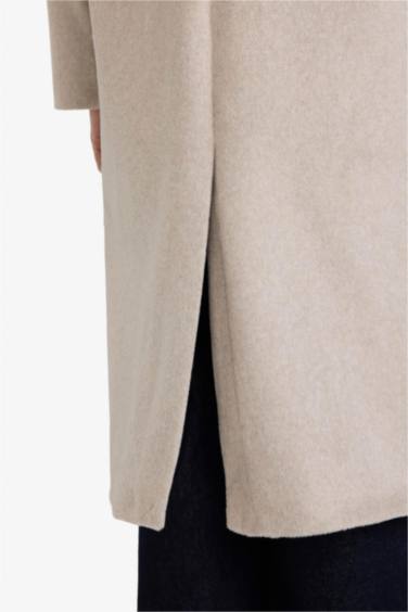 Relax Fit Düğmeli Uzun Kaşe Kaban
