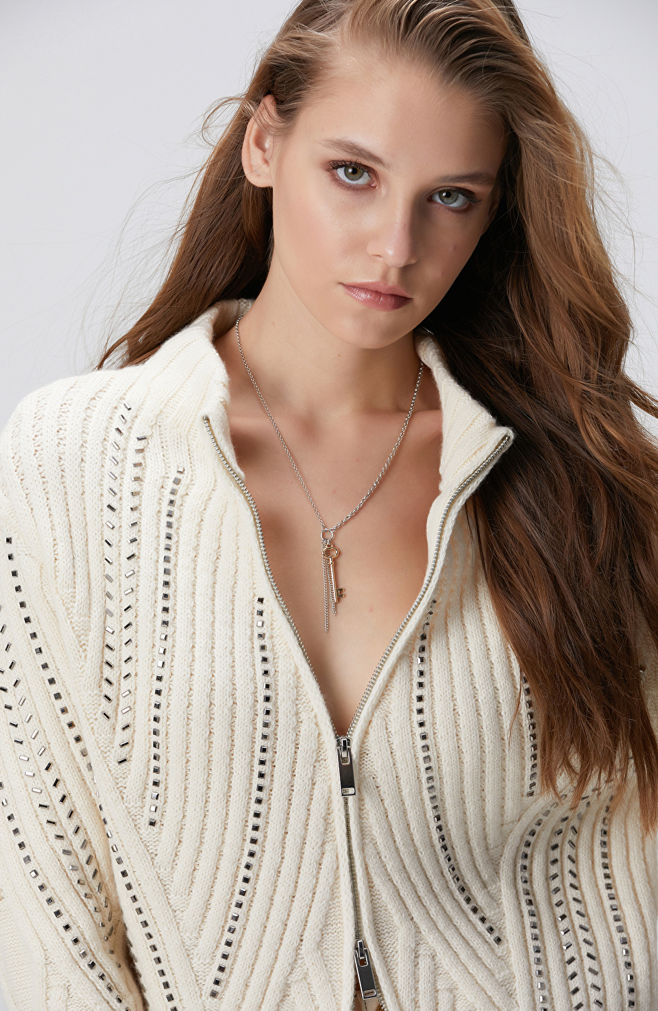 Silver gümüş rengi kolye, temiz hatlar ve minimal detaylarıyla her zaman dikkat çeker. Özellikle notr renk paletine sahip kıyafetlerle bir araya geldiğinde, klasik ve şık bir dokunuş sağlar. Uzun gövdeli tipler için idealdir; omuz hizasında asılıp vücut çizgilerini dengeler. Sonbahar aksam yürüyüşlerinde veya ofis sonrası buluşmalarda, sade bir beyaz tişörtle yüksek bel jeans ile kombinlenebilir. Ayrıca, siyah deri kemer ve beyaz sneaker ile tamamlayarak günlük bir stili de oluşturabilirsin. Kolye, katlanmadan astığın sürece şekli bozulmaz ve iç kıyafet olarak da kullanılabilir. Gündüz saatlerinde açık kolları olan bluzlarla, akşam saatlerinde ise daha şık bir kıyafetle uyum sağlar.