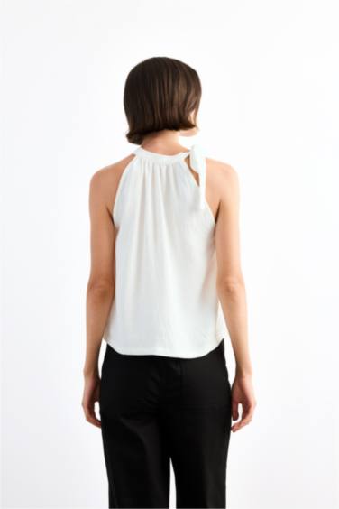 Bağlamalı Çiçek Nakışlı Kolsuz Bluz