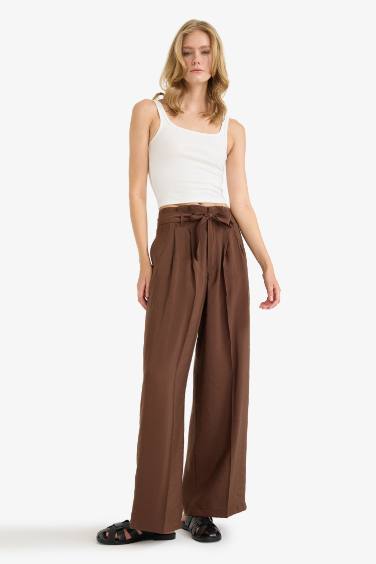 -%20Wıde Leg Cep Detaylı Paperbag Bel Düz Paça Uzun Boy Modal Pantolon