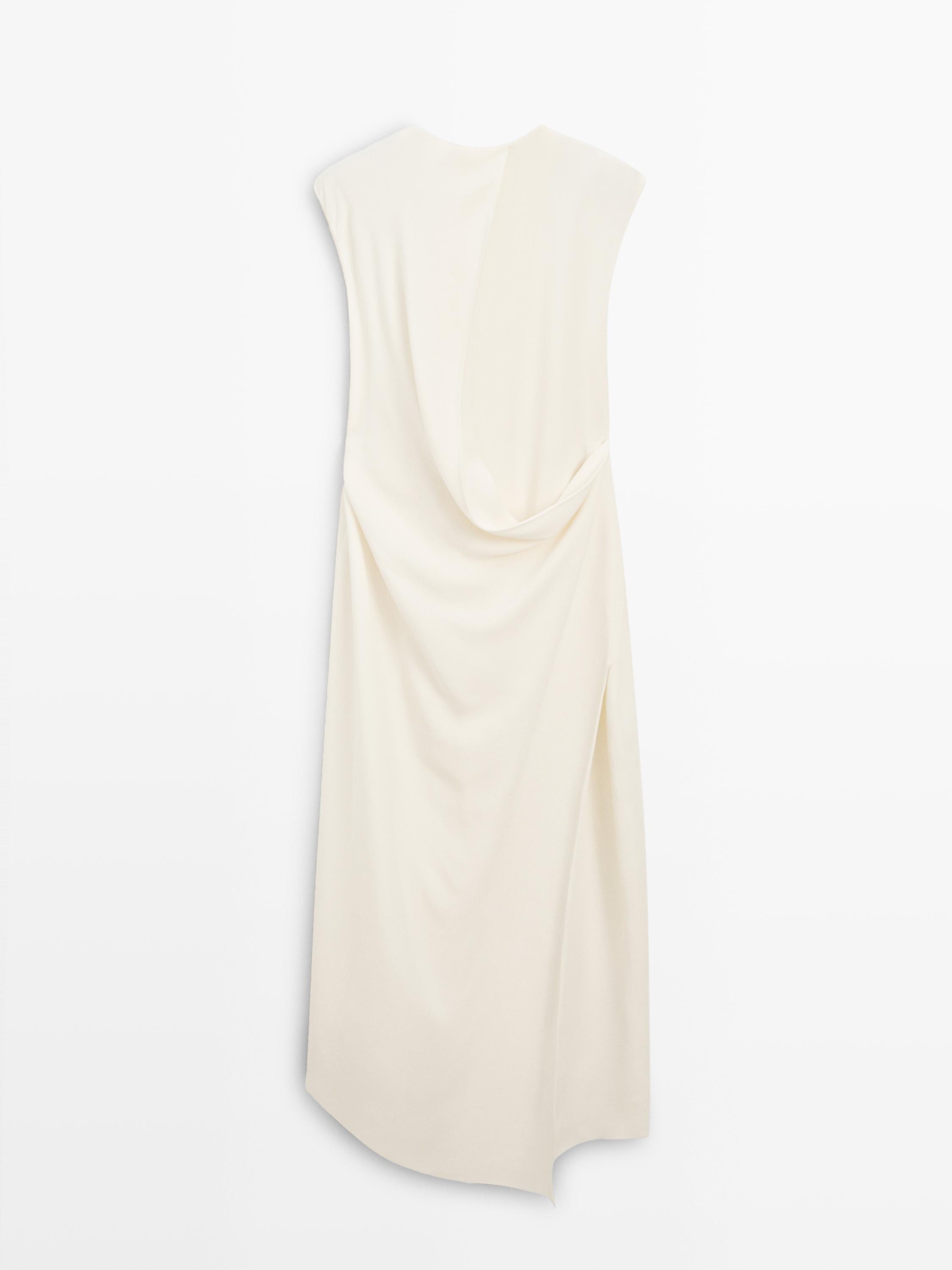 Bu elbise, temiz hatlar ve zarif detaylarıyla minimalist tarzın en kusursuz ifadesidir. Sırtında hafif bir yarım dörtlü detayla donatılmış olan bu midi elbise, hem şık hem de rahat bir denge sunar. Uzun govdeli tipler icin idealdir; sırt detayları vucudun daha uzun gormesini saglar. Kombinleme konusunda esneklik sunar: beyaz tisortle ve yuksek bel jean ile klasik bir casual look olusturabilirsin; aynı zamanda siyah deri kemer ve beyaz sneaker ile tamamlayarak ofis-sonrasi bulusmalarda da uygun olur. Renkleri notr olduğu için her tür cilt tonuna uygundur. İç katman olarak da kullanılabilir; kollarını kısaca kıvırarak klasik bir bluz gibi giyebilirsin. Daha şık bir dokunuş istersen, ince bir kolye veya basit bir bilezikle tamamlayabilirsin. Bakım açısından dikkatli bir şekilde asmali, kurutmalı ve katlama yapmadan saklamalısın. Her mevsimde kullanılabilecek bu elbise, günlük hayatta ve özel gece aktivitelerinde de güçlü bir secenek sunar.