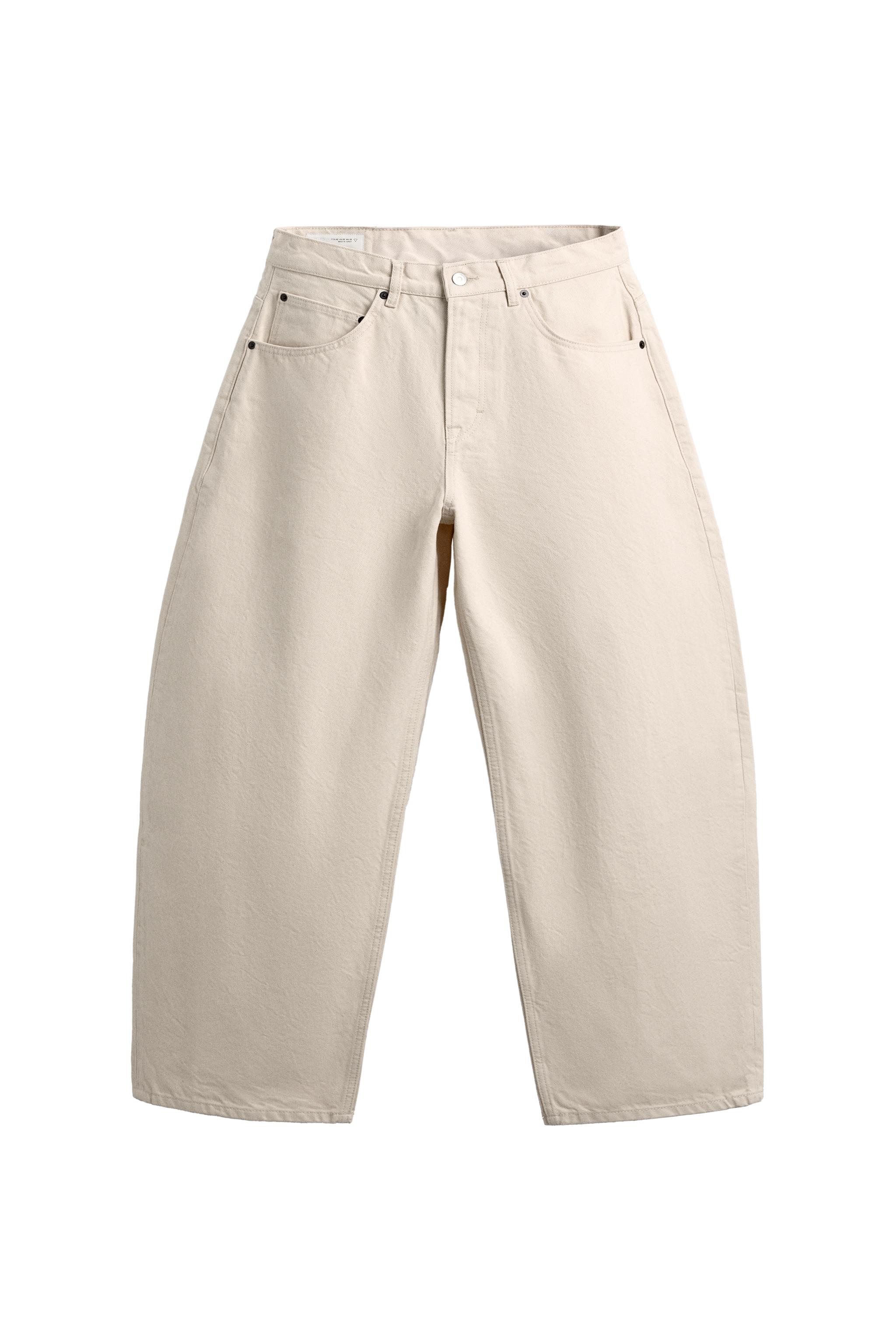 Beige ve cream tonlarında sunulan balon kesim jean, temiz hatlar ve sade detaylarıyla minimalist tarzın en iyi temsilcilerinden biri. Daha çok hafif doku ve bol kesimle dikkat çeken bu jean, rahatlıkla günlük kullanıma uygun bir yapıya sahip. Uzun gövdeli tipler için idealdir; omuzların dengelenmesine yardımcı olurken, vücut hatlarını da yumuşakça ortaya koyar. Beyaz tisörtle ve yüksek bel jeans ile kombinleme yaparak, şehir içinde keyifli bir dolaşım seti oluşturabilirsin. Aynı zamanda, açık yaka bluz ve hafif kabanla mevsimsel bir görünüm elde edebilirsin. Renk uyumu açısından siyah deri kemer ve beyaz sneaker ile tamamlayarak modern bir dokunuş ekleyebilirsin. Kullanım sırasında katlanmadan asılması, dokusunu korumaya yardımcı olur. İç katman olarak da kullanılabilir; daha serin günlerde üzerine bir blazer veya mont giyerek şıklık ve konforu bir arada sağlayabilirsin.