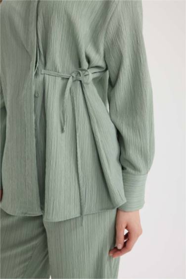 Regular Fit Büzgülü Krinkıl Kumaş Uzun Kollu Gömlek