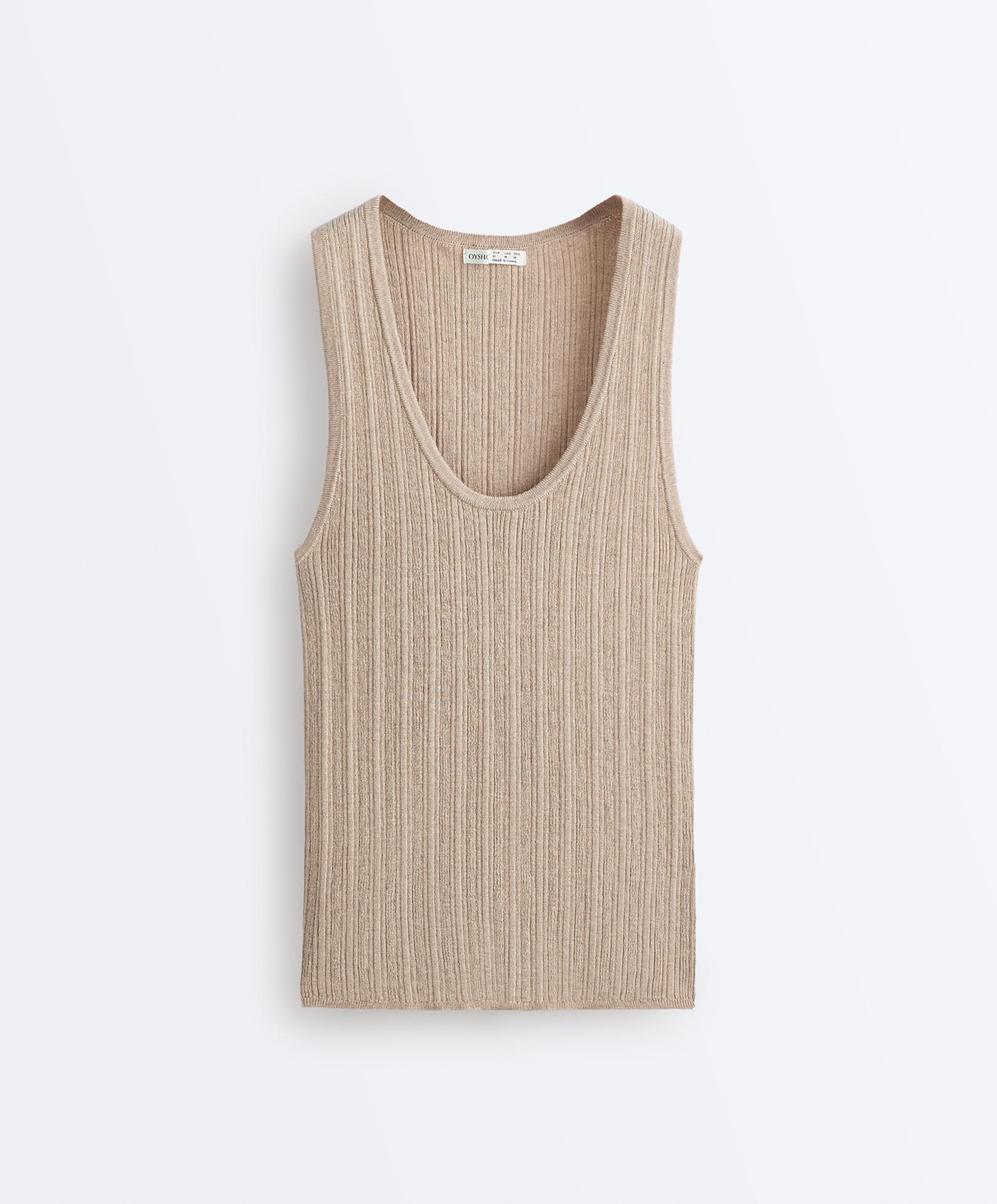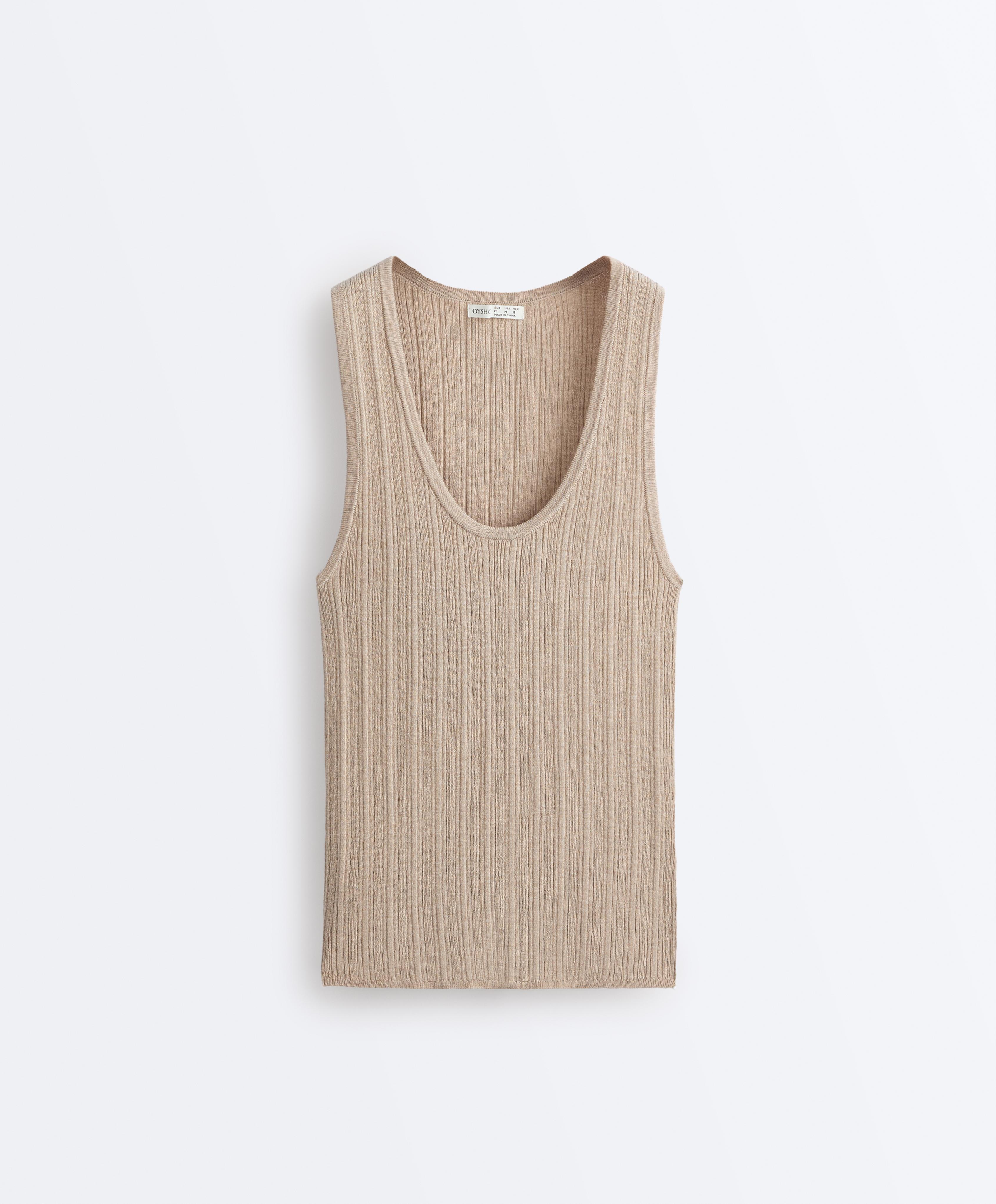 Bisiklet yaka ve kolsuz Top. Fitilli örgü kumaş ve hafif dar fit.