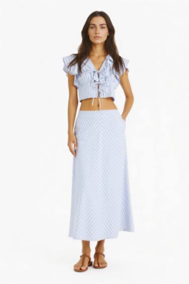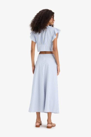 A Kesim Çizgili Normal Bel Poplin Maxi Etek