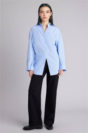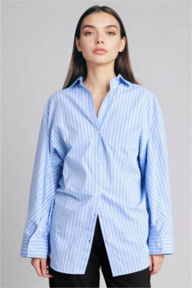 Oversıze Çizgili Poplin Gömlek