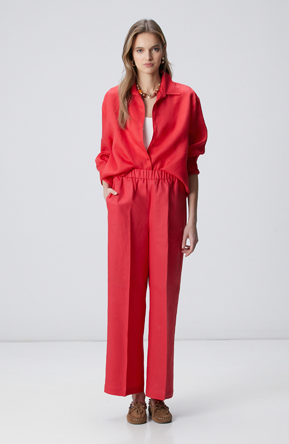 Nar Çiçeği Keten Karışımlı Pantolon