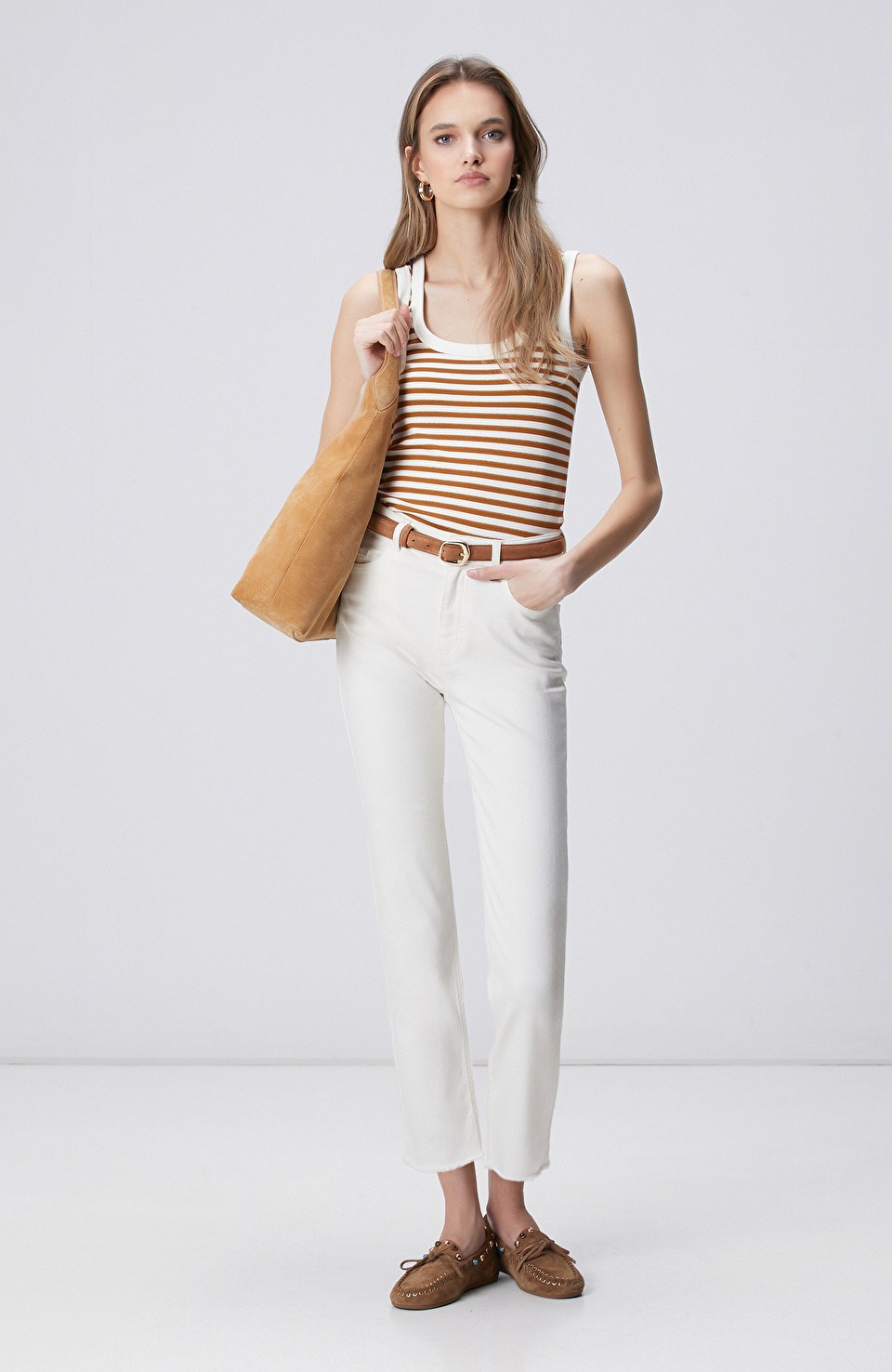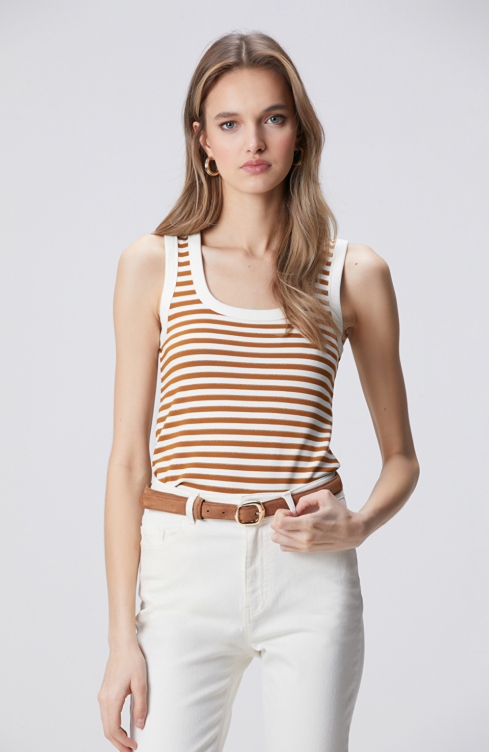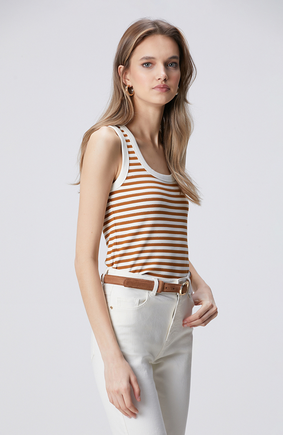 Beyaz Tütün Çizgili Örme Atlet
